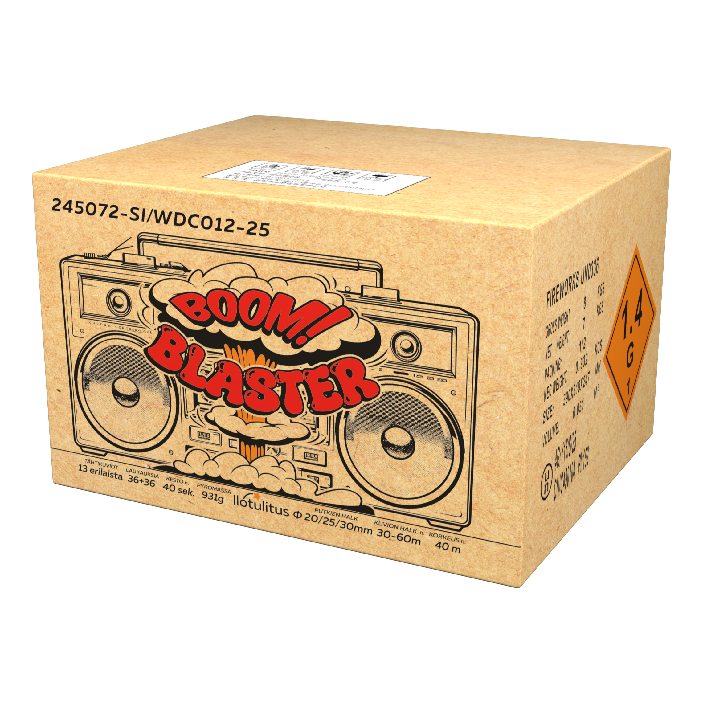 Upea sommitelma hienoja efektejä ja kauniita väriyhdistelmiä. 72 laukausta, kauniita komeettoja, höysteenä upeita kerroksellisia tähtikuvioita joissa upeat yhdistelmät.