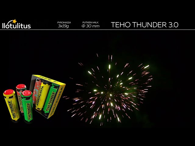 Täräyttävä pommi! Huippuunsa virittetty 3.0 versio legendaarisesta Teho Thunderista täräyttää taivaalle vuodenvaihteen muotivärit: kultaa, vihreää ja punaista. Mausteena rutkasti rätinää!